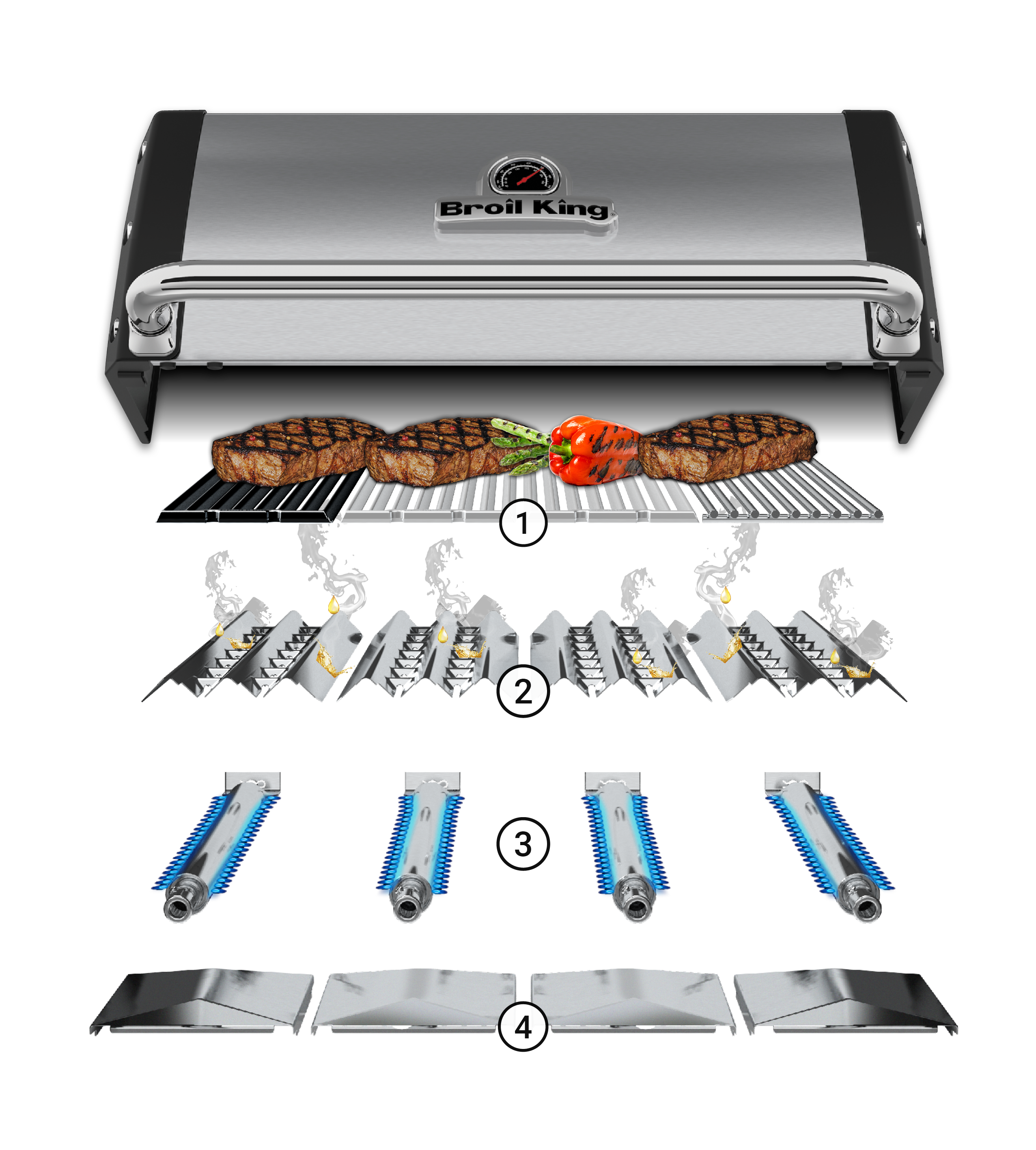 Die extrem leistungsstarken Rohr-in-Rohr Brenner haben ihre Brenneröffnungen seitlich und liefern Dir somit doppelte Flammreihen für ein Höchstmaß an Leistung und gleichmäßiger Hitzeverteilung.